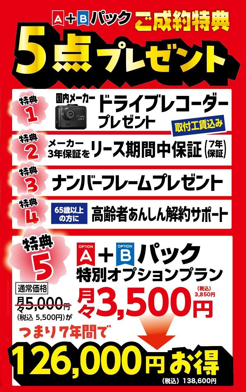 通常のリースプランでは3.3万円(税込)年2回のボーナス払いを設定しておりますが、お客様のご要望に応じてボーナス払いのないプランを設定することもできます。その場合、月々のお支払い金額が変わりますのでお客様のお支払い計画に合わせてお選びください。